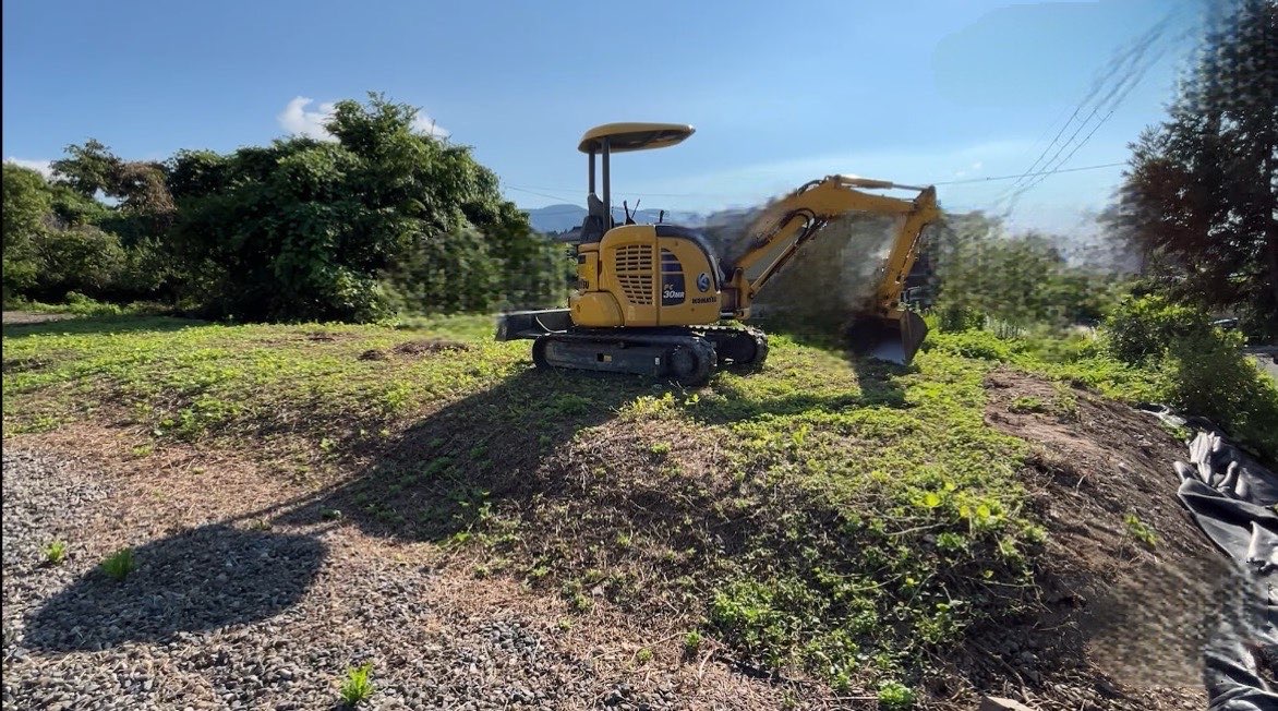 ハウスを設置するためには、まず土地を平らにしなければいけません。